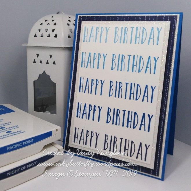 The layout is very similar to cards I have made before, building the background with the Label Me Bold stamp set.I added an extra layer of vellum for extra interest and texture.The sentiment from Perennial Birthday was stamped with the retiring In Colour Blueberry Bushel.