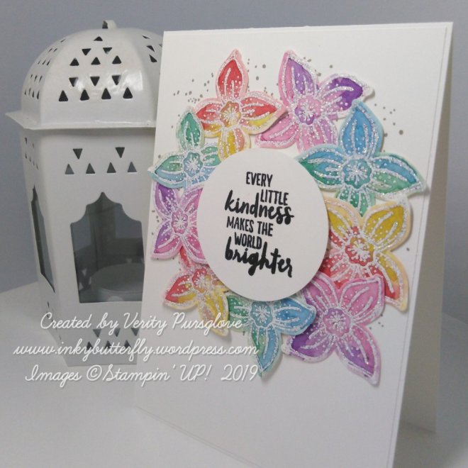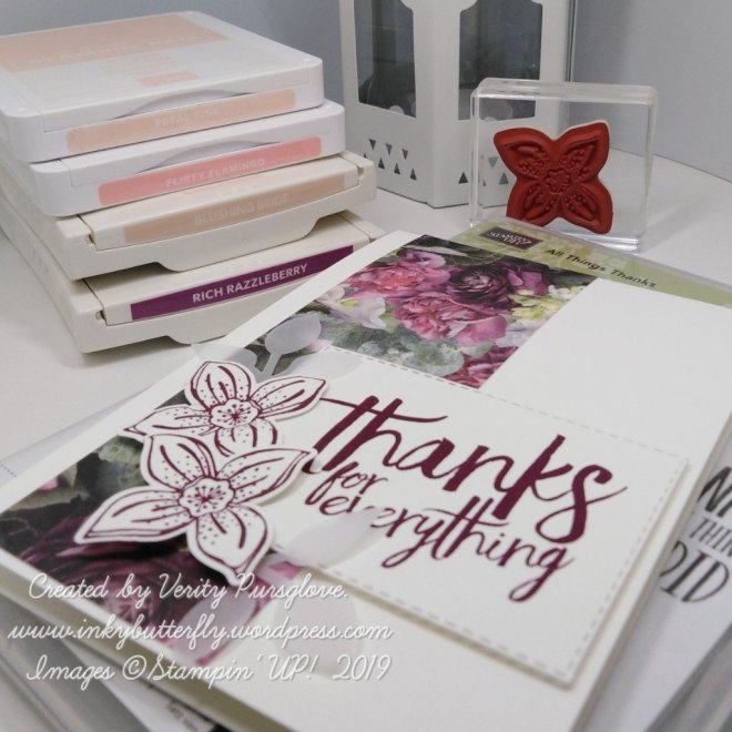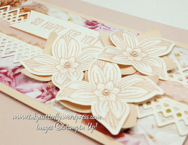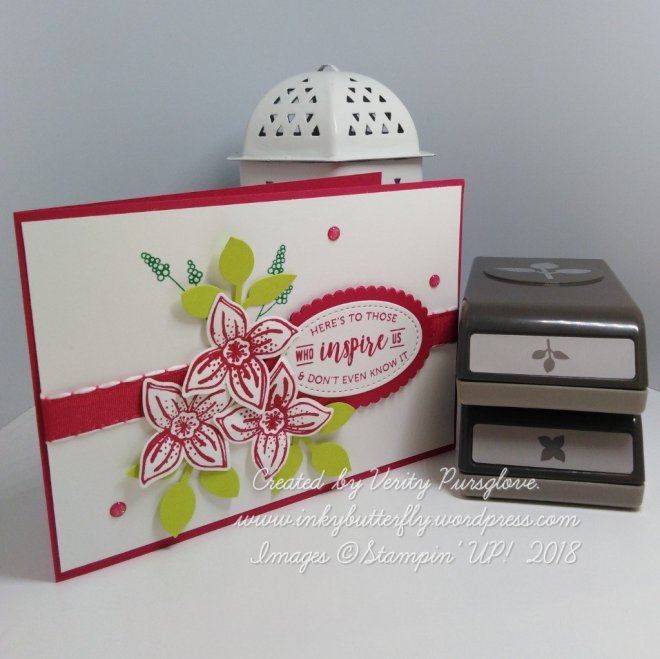 I have taken the opportunity to showcase some retiring products, Pop of Petals, Perennial Birthday, Four Petal Flower punch and the Leaf Punch.
