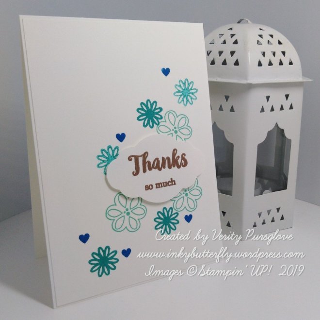 This card was stamped with Memento ink and coloured using Stampin’ Blends.