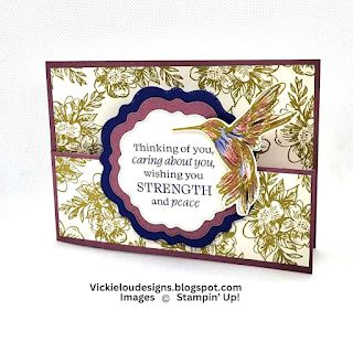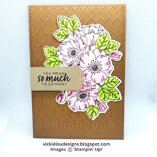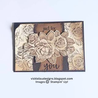 This sample was made using Wild Wheat and Early Espresso, bring in the Petal Park stamps instead of Colour and Contour, (both sets are retiring)