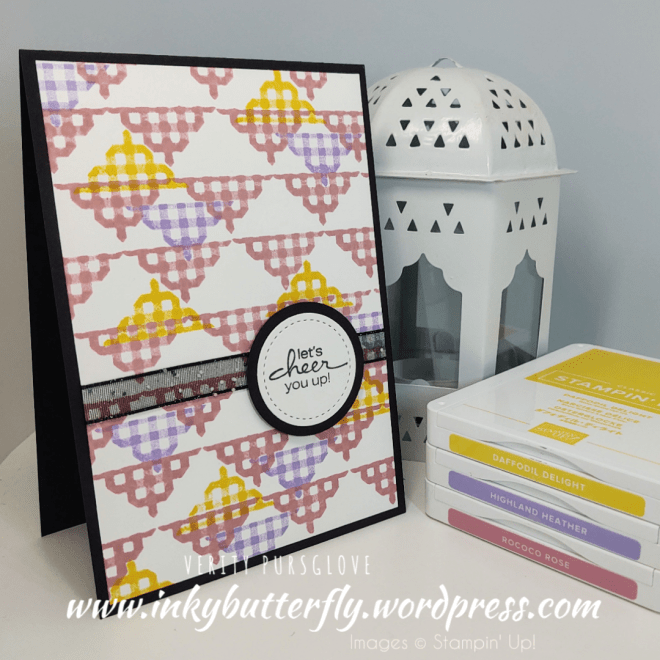 My original sample card used Rococco Rose, Highland Heather and Daffodil Delight!