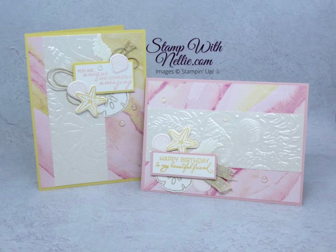 I definitely prefer the addition of the Calypso Coral to the seashells and card base.
