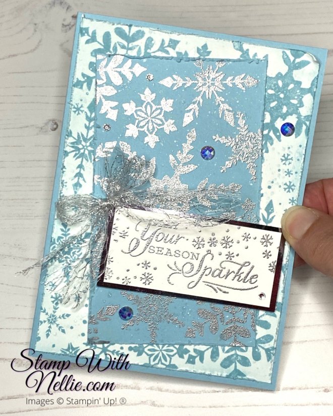The piece was simply layered with coordinating cardstock with a die cut sentiment added with dimensionals