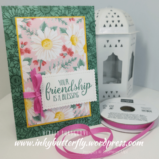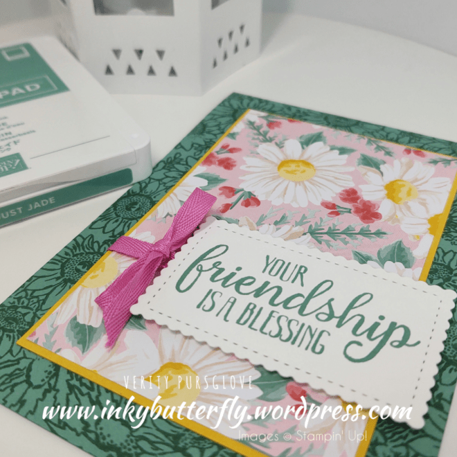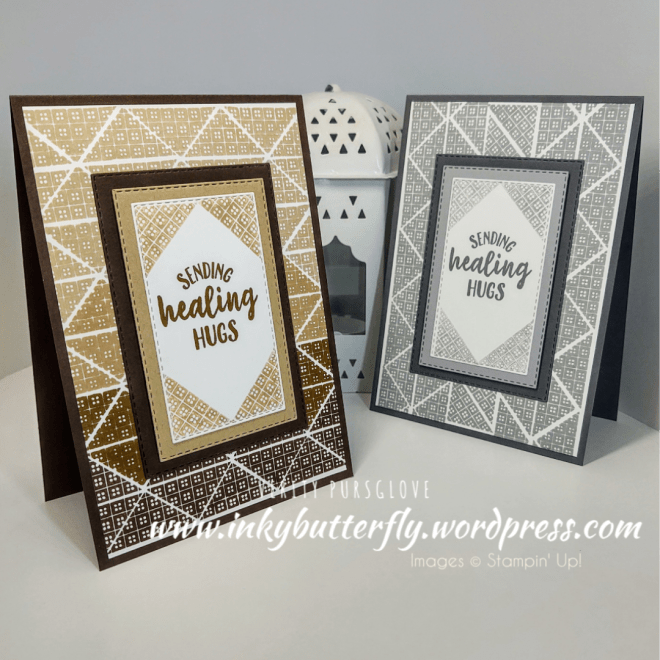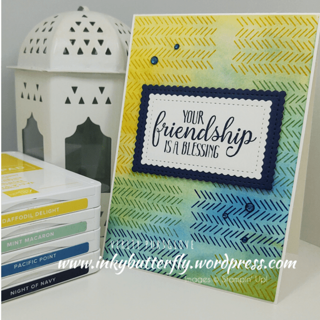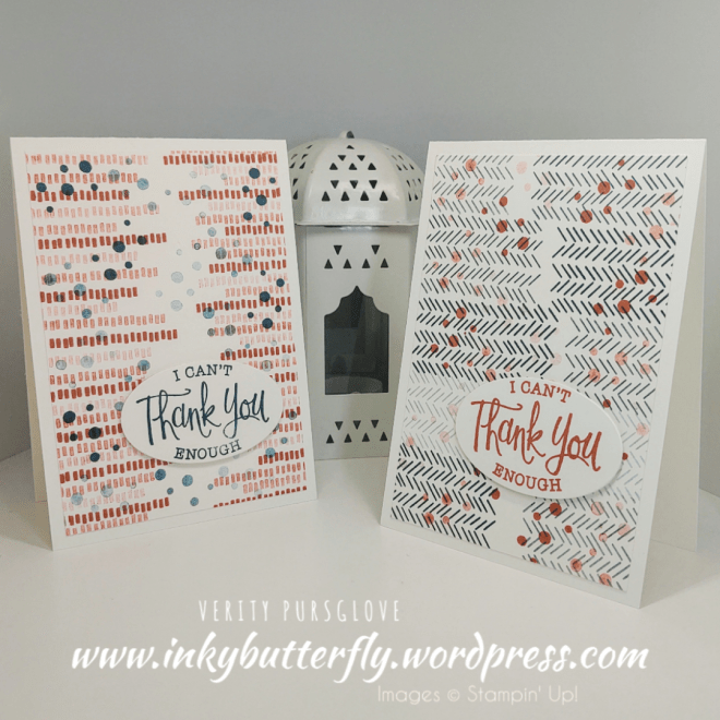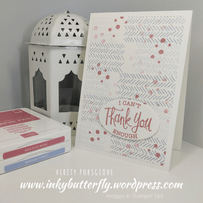 So for today’s card, a number of retiring items are being used, the featured stamp set being Pattern Play.