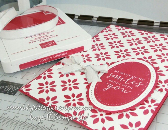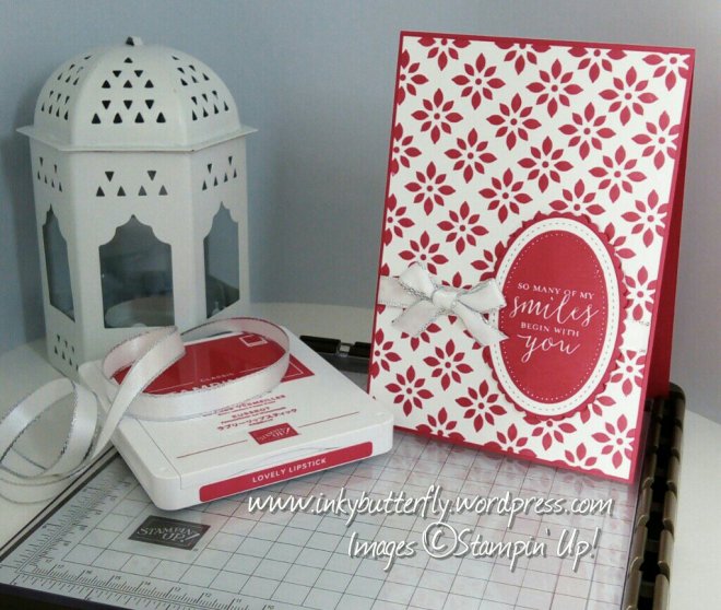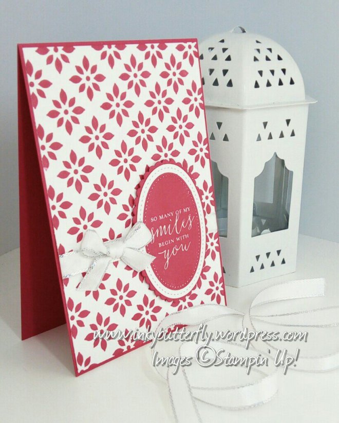 I layered the stamped card on to Poppy Parade card stock and adhered this to a Whisper White card base.
