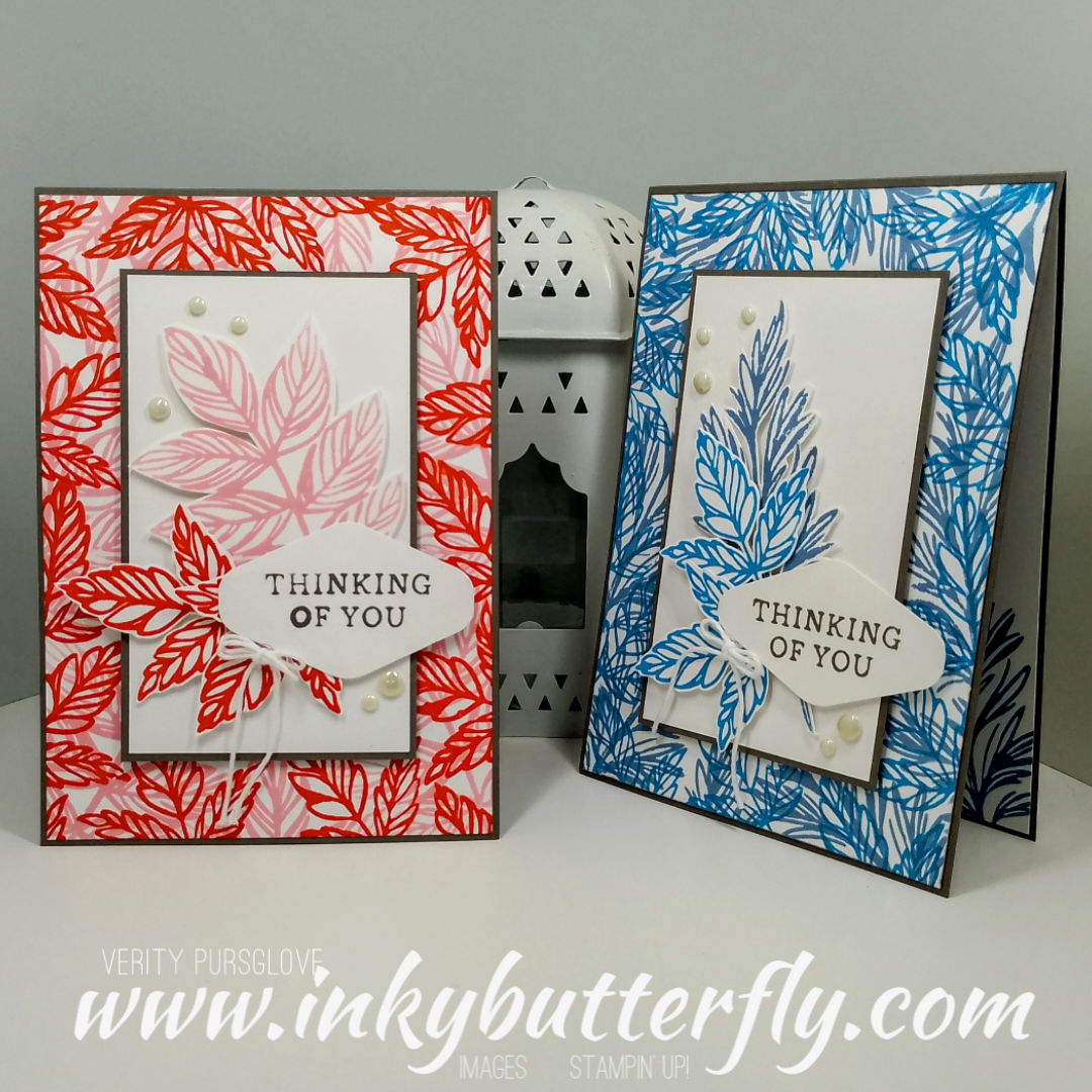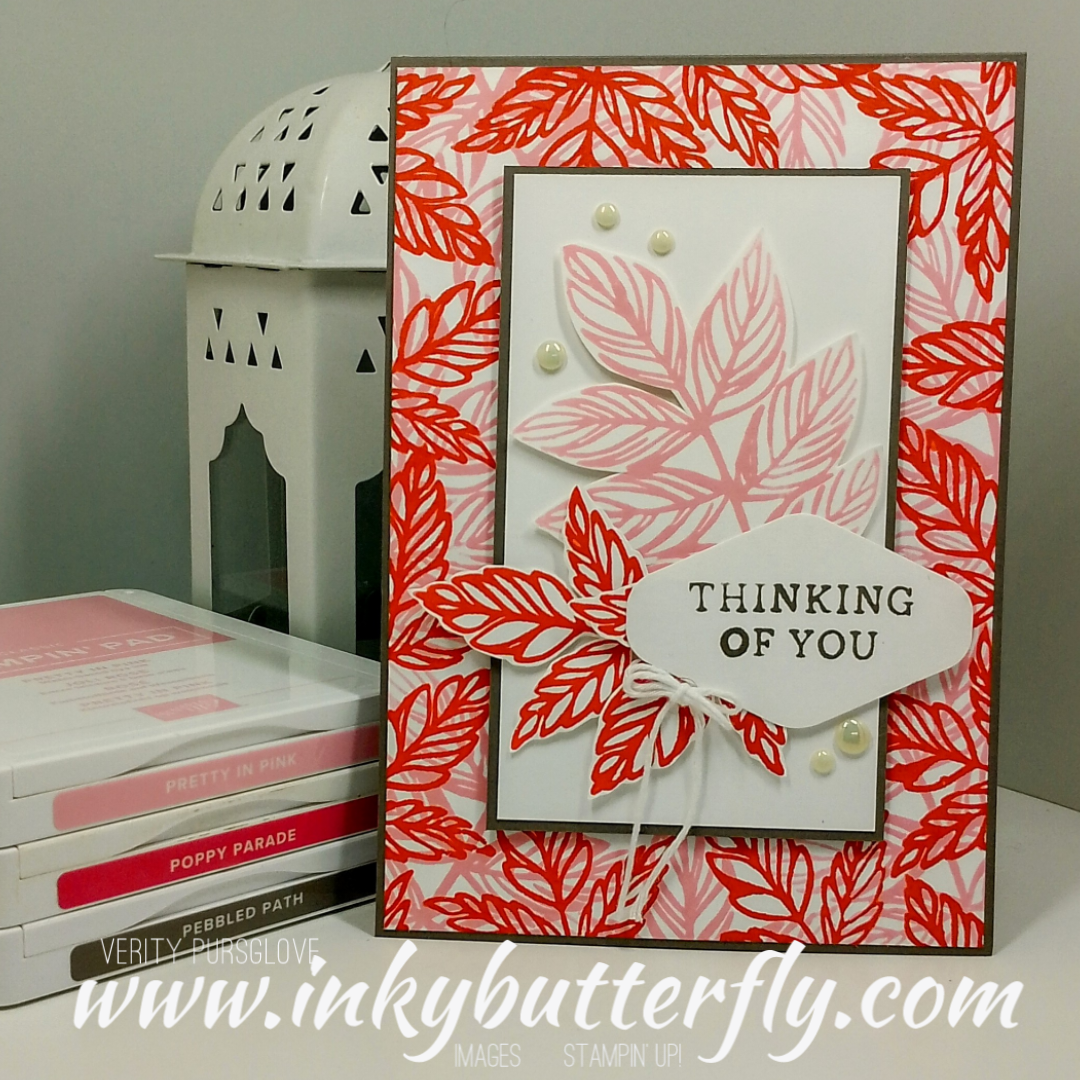 I created a simple stamped background with Pretty in Pink and Poppy Parade and added this to a Pebbled Path card base.