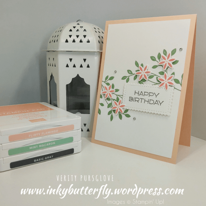 Here’s the original sample using Coastal Cabana, Flirty Flamingo and Daffodil Delight, all from the Brights family!