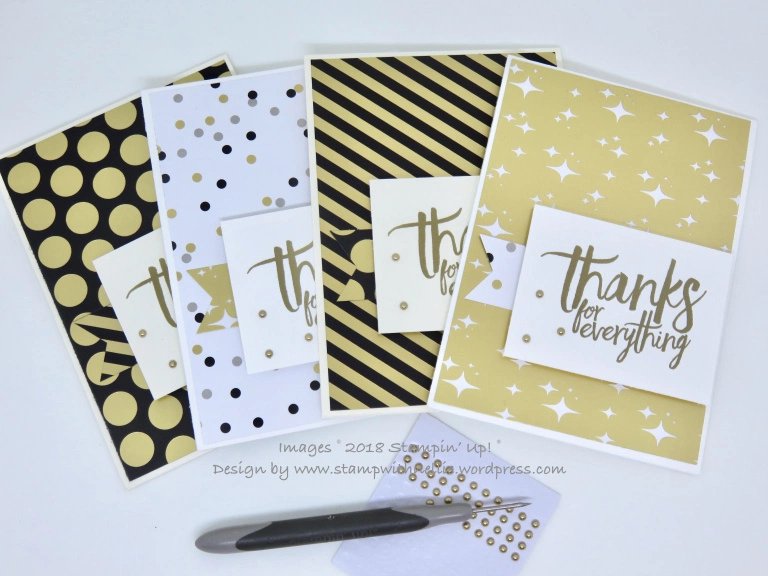 I’ve tried something different with the layout of these cards, choosing to wrap the ribbon from top to bottom.