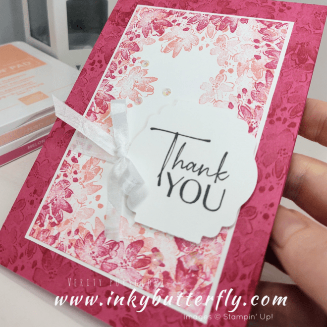 Layering the Melon Mambo ink over the Flirty Flamingo adds some depth using the same simple technique.