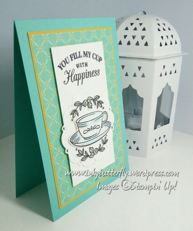 Here’s another project using a retiring favourite. Anyone who knows me knows I love tea! So this set really appeals to me.