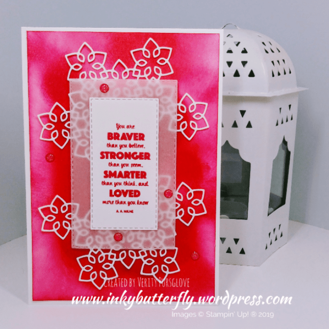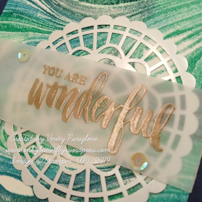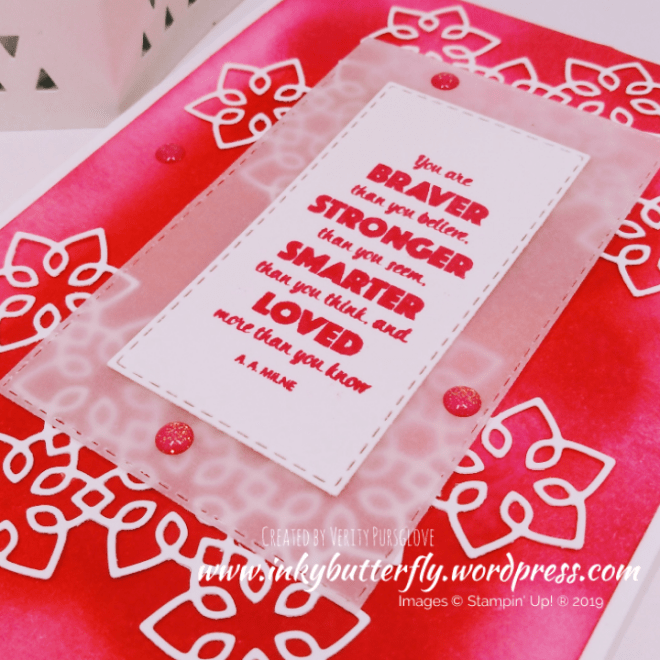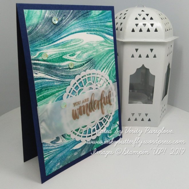 The Designer Series Paper was layered on to a Very Vanilla card layer and then to the card base with snail adhesive.