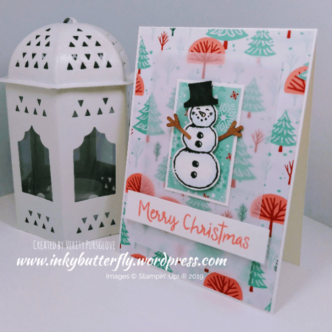 I picked out a, sentiment from the Itty Bitty Christmas stamp set. Matching ink was used to stamp on to Whisper White card stock in contrast to the Vanilla.