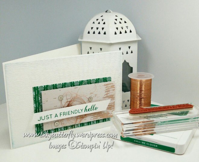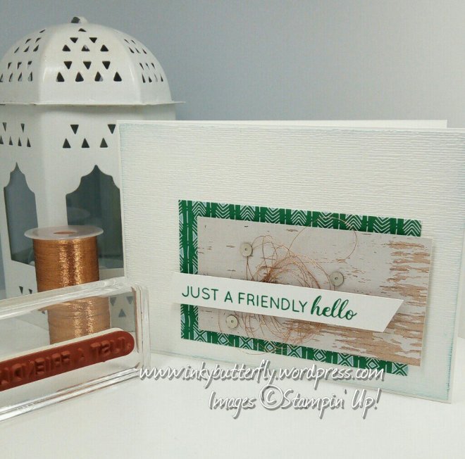I have kept this card very neutral in tone, choosing Very Vanilla as a base. Wood Textures designer series paper was adhered to the front.